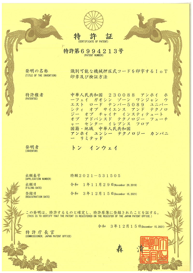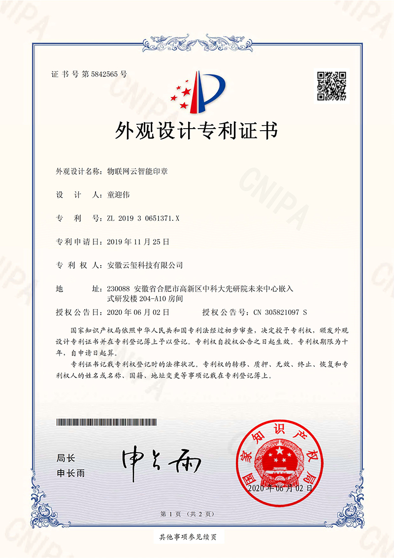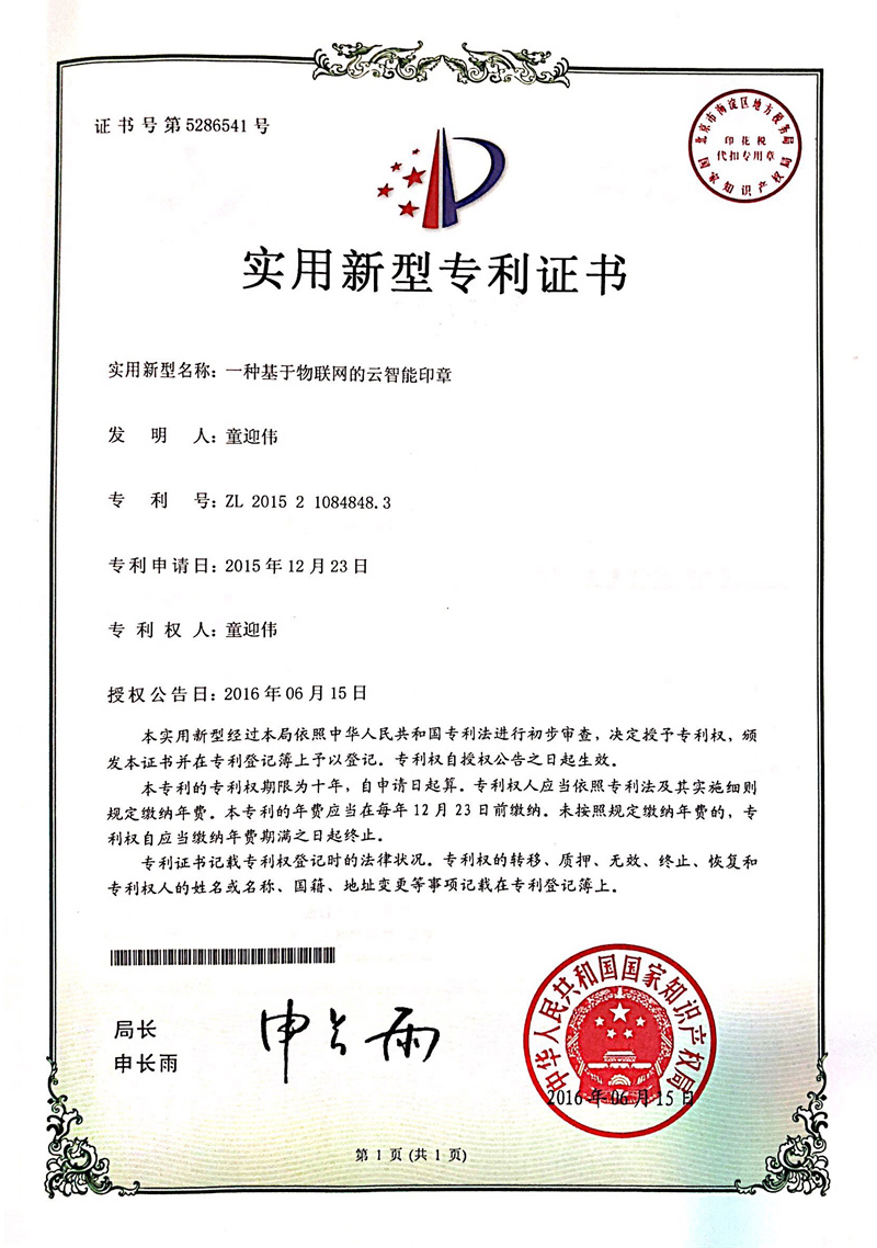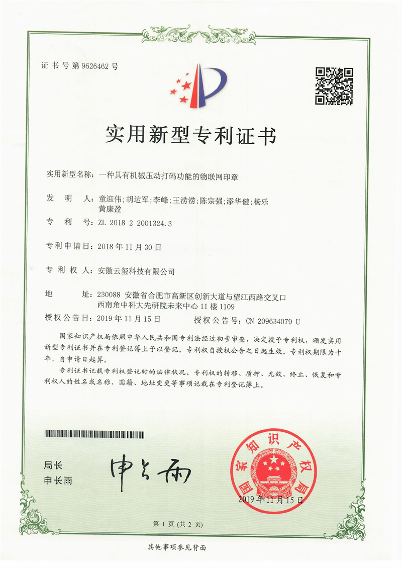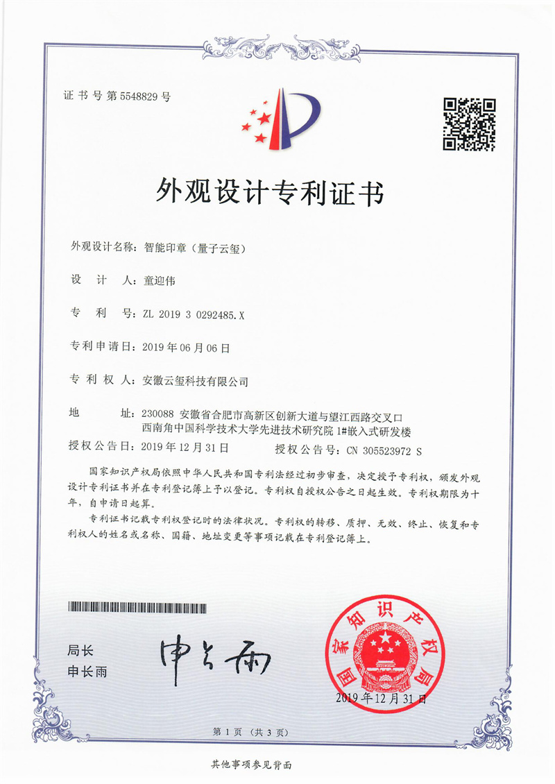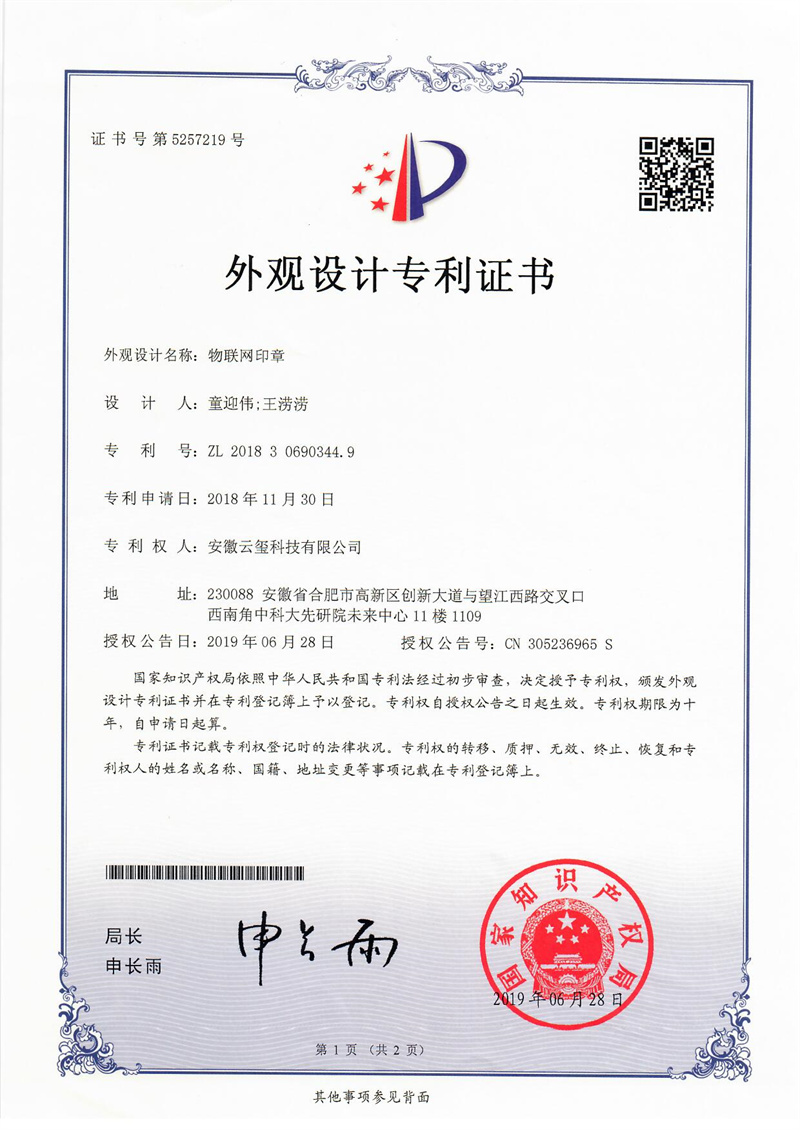 公司原創(chuàng)發(fā)明一體式智能印章技術,引領國內(nèi)外新一代智能印簽創(chuàng)新變革。獲中日韓多項發(fā)明專利,徹底解決了實體印章和電子印簽管控的社會難題,獲國務院國資委全國央企熠星二等獎。公司聯(lián)合國家信息安全產(chǎn)品認證中心、公安部三所、信通院、中國印章協(xié)會等,主導起草了行業(yè)首個智能印章安全認證標準和智能印章產(chǎn)品標準,引領了智能印章行業(yè)發(fā)展。
